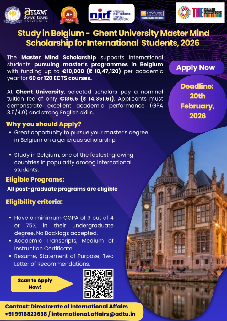 Study in Belgium - Ghent University Master Mind Scholarship for International Students, 2026 |