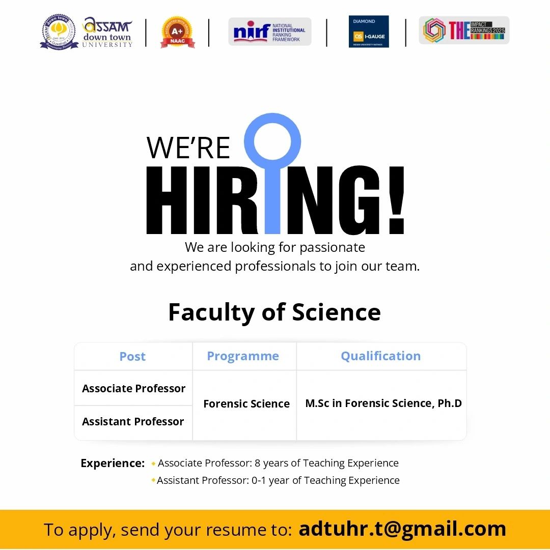Assam down town University is hiring! We are looking for passionate and experienced professionals to join their team in the Faculty of Science.