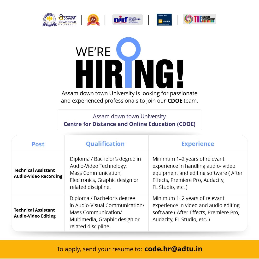 WE ARE HIRING! Assam down town University is looking for passionate individuals to join our dynamic team!