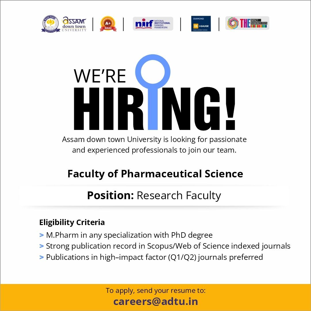 We are hiring passionate and experienced faculty for PharmaceuticalScience