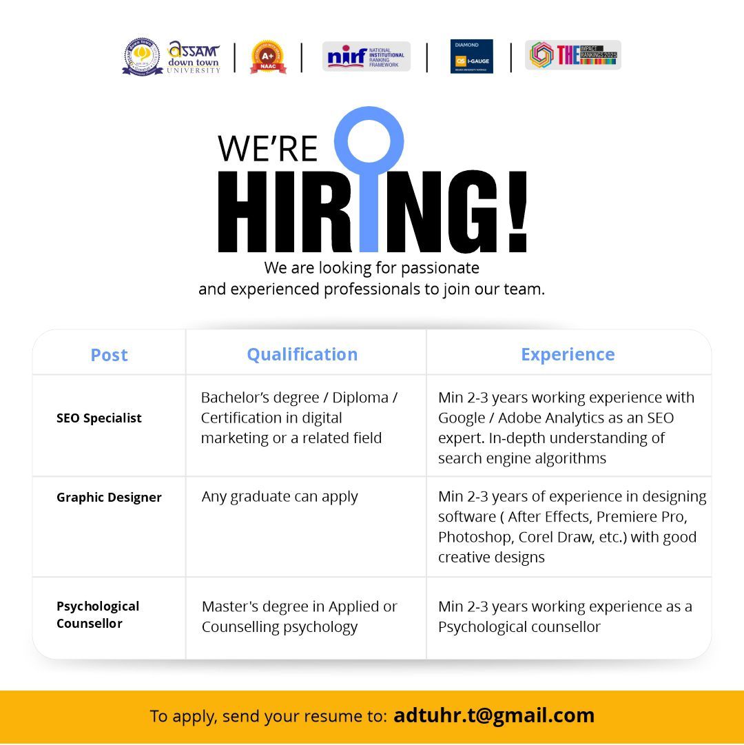 Join our dynamic team at Assam down town University and take your career to the next level.