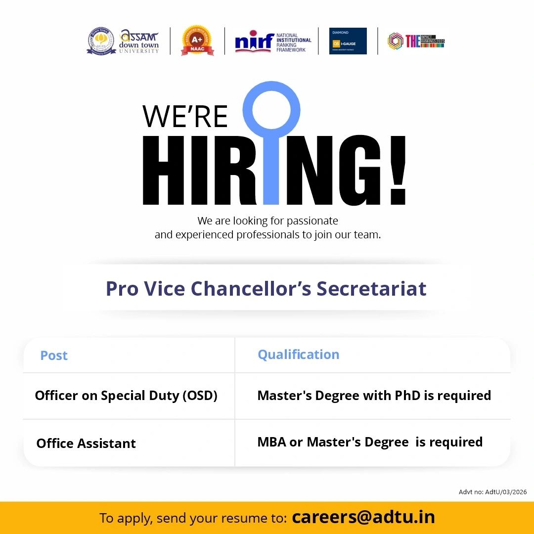 We are HIRING at Assam down town University!