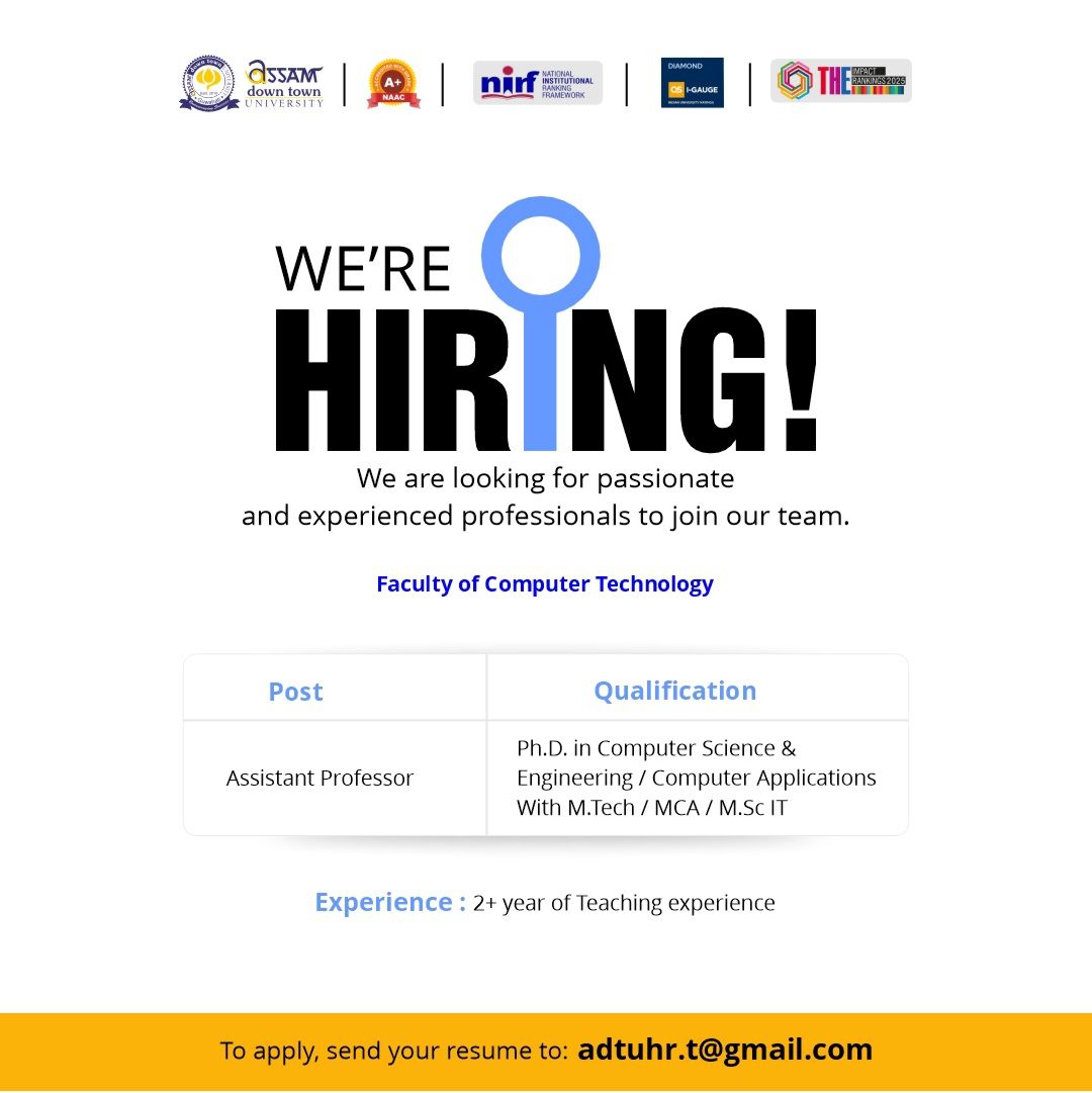 WE ARE HIRING! Assam down town University is looking for passionate individuals to join our dynamic team!