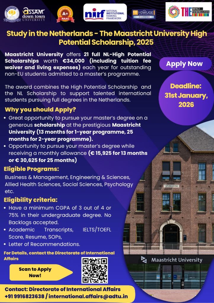 Study in the Netherlands - The Maastricht University High Potential Scholarship, 2025 |