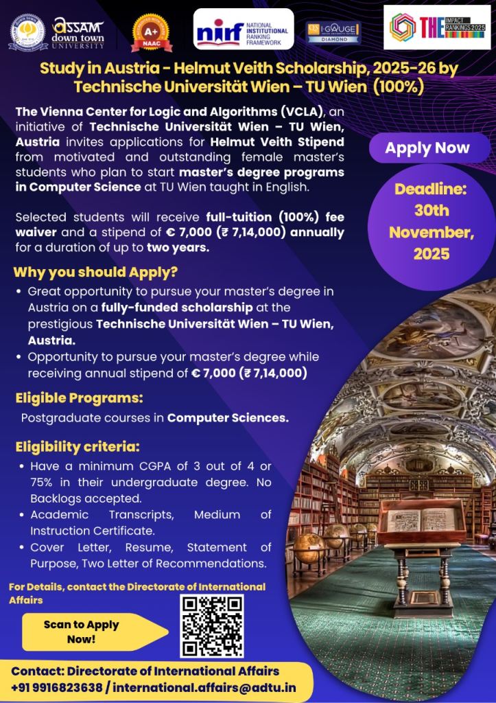 Study in Austria - Helmut Veith Scholarship, 2025-26 by Technische Universitat Wien - TU Wien (100%) |