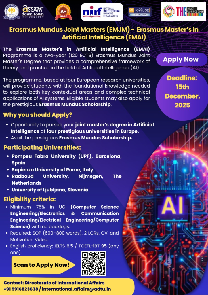 Erasmus Mundus Joint Masters (EMJM) - Erasmus Master's in Artificial Intelligence (EMAI)