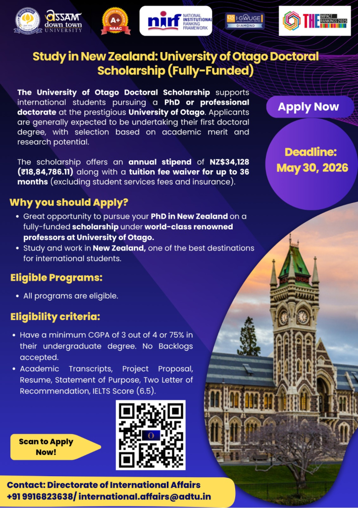 Study in New Zealand: University of Otago Doctoral Scholarship (Fully-Funded) |