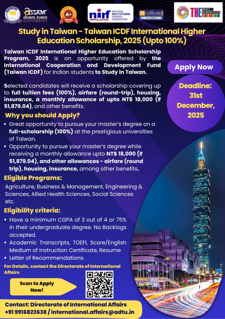 Study in Taiwan - Taiwan ICDF International Higher Education Scholarship, 2025 (Upto 100%) |