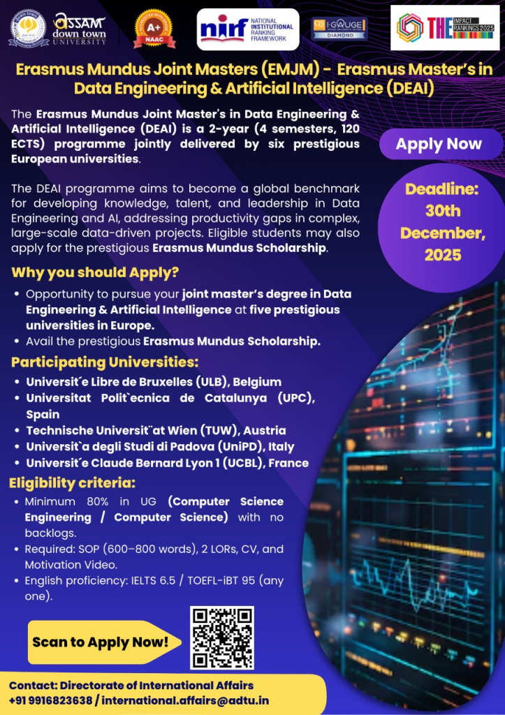 Erasmus Mundus Joint Masters (EMJM) - Erasmus Master's in Data Engineering & Artificial Intelligence (DEAI) |