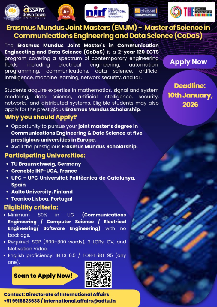 Erasmus Mundus Joint Masters (EMJM) - Master of Science in Communications Engineering and Data Science (CoDaS)