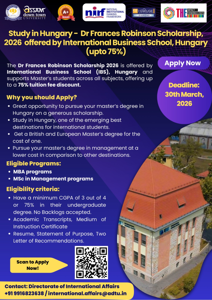 Study in Hungary - Dr Frances Robinson Scholarship, 2026 offered by International Business School, Hungary (upto 75%) |