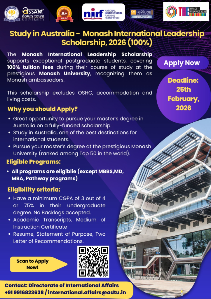 Study in Australia - Monash International Leadership Scholarship, 2026 (100%) |