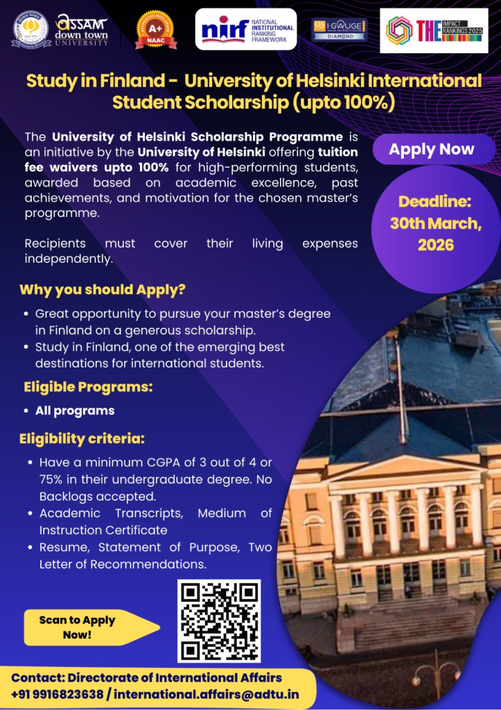 Study in Finland - University of Helsinki International student scholarship (upto 100%) |