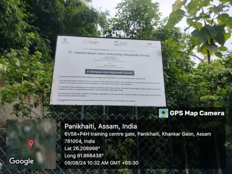 The "Landscaping with trees and plants" initiative at Assam down town University involves the establishment of a Miyawaki Forest, a Herbal Garden, and a Rubber Tree Garden within the campus. This initiative reflects the university's commitment to environmental sustainability and biodiversity, enhancing the campus's aesthetic and ecological value.