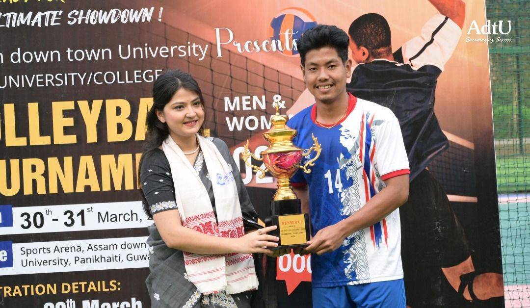 The tournament showcased remarkable energy, teamwork, and sportsmanship among the players. In the Men’s Category, Lakshmibai National Institute of Physical Education (L.N.I.P.E) emerged as the Champion, while Assam down town University secured the Runner-Up position after delivering a strong and commendable performance throughout the tournament. The Closing Ceremony was graced by Chief Guest Violina Boruah, Assamese film actress, and Guest of Honour Jupi Hazarika, social activist, who appreciated the efforts of all participants and encouraged young athletes to continue striving for excellence.