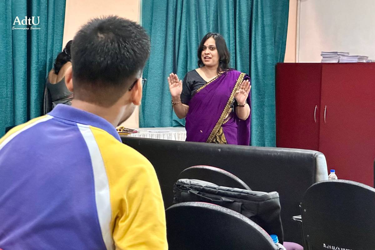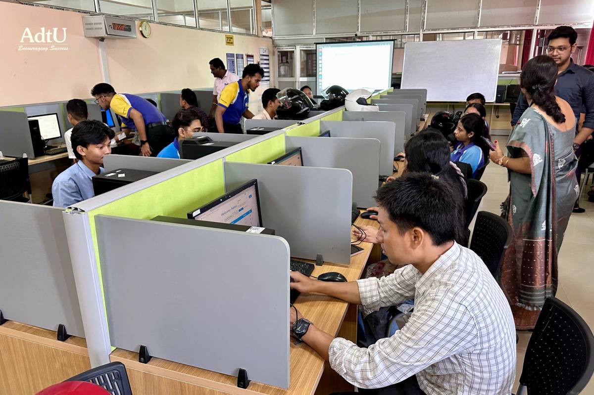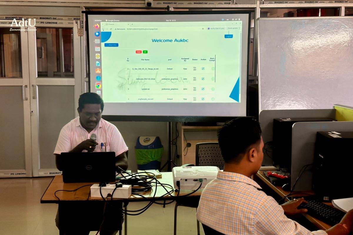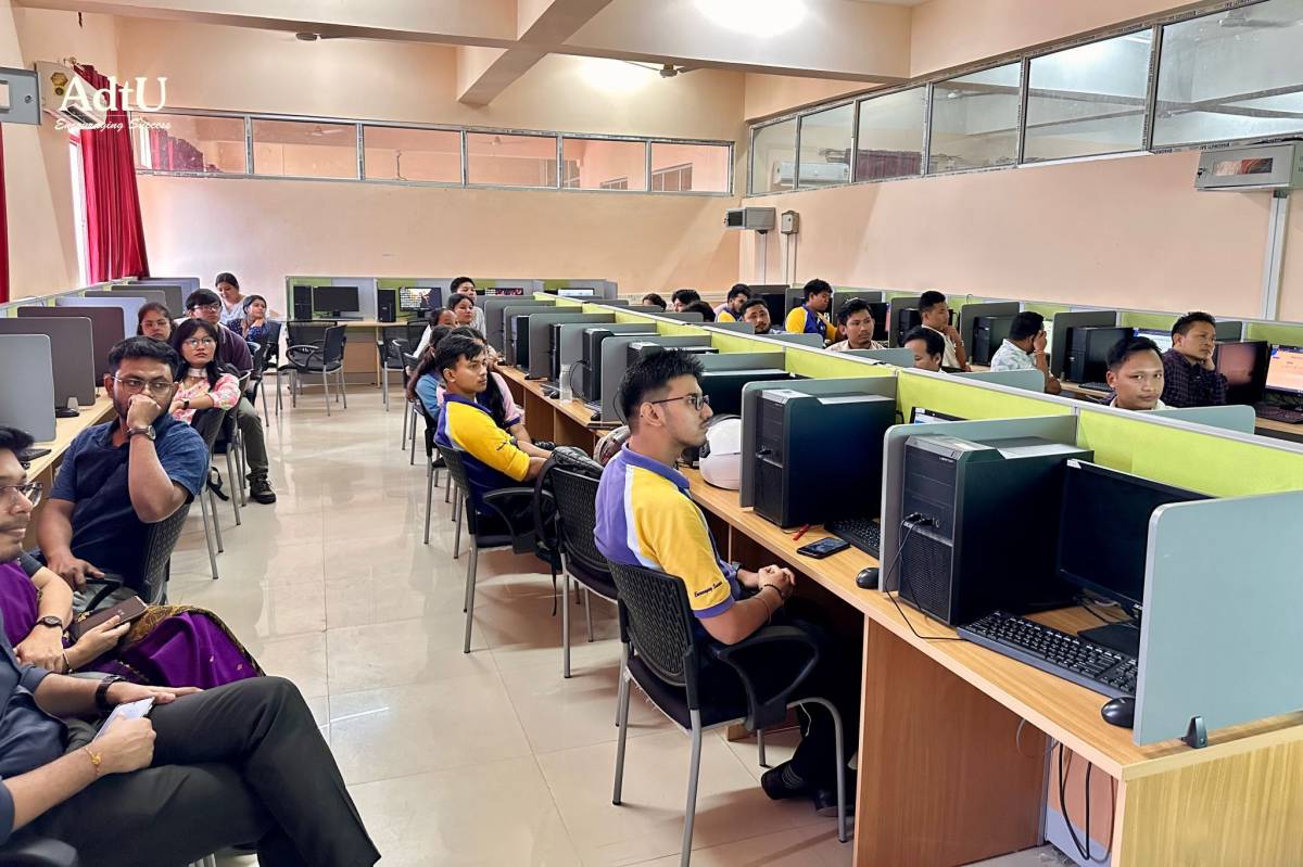 Eminent resource persons Dr. Sobha L ( Lalitha Devi). Devi and Dr. Vijay Sundar Ram (AU-KBC Research Centre, Chennai) shared insights on EDU, Anaphora, Coherence, NLP, NER, POS Tagging, and Chunking. Dr. Seuji Sharma (Gauhati University) and Dr. Biswajit Brahma (Cotton University) led specialized sessions on discourse markers in Assamese and Bodo respectively. A hands-on training session on an Annotation Tool developed by AU-KBC enabled active participation from research scholars of Gauhati University, Cotton University, IIT Guwahati (Departments of Linguistics, Assamese, Bodo, and Computer Science), along with BCA AIML 5th Semester students of AdtU.