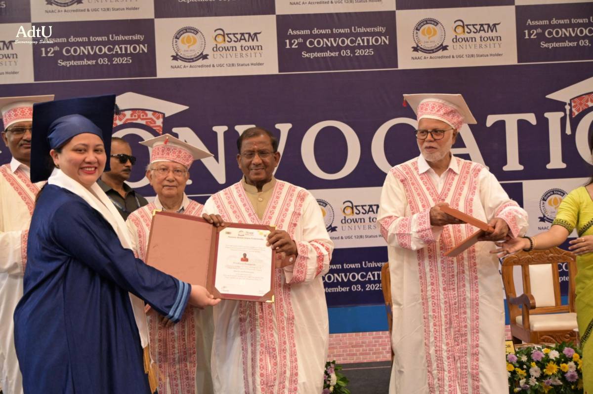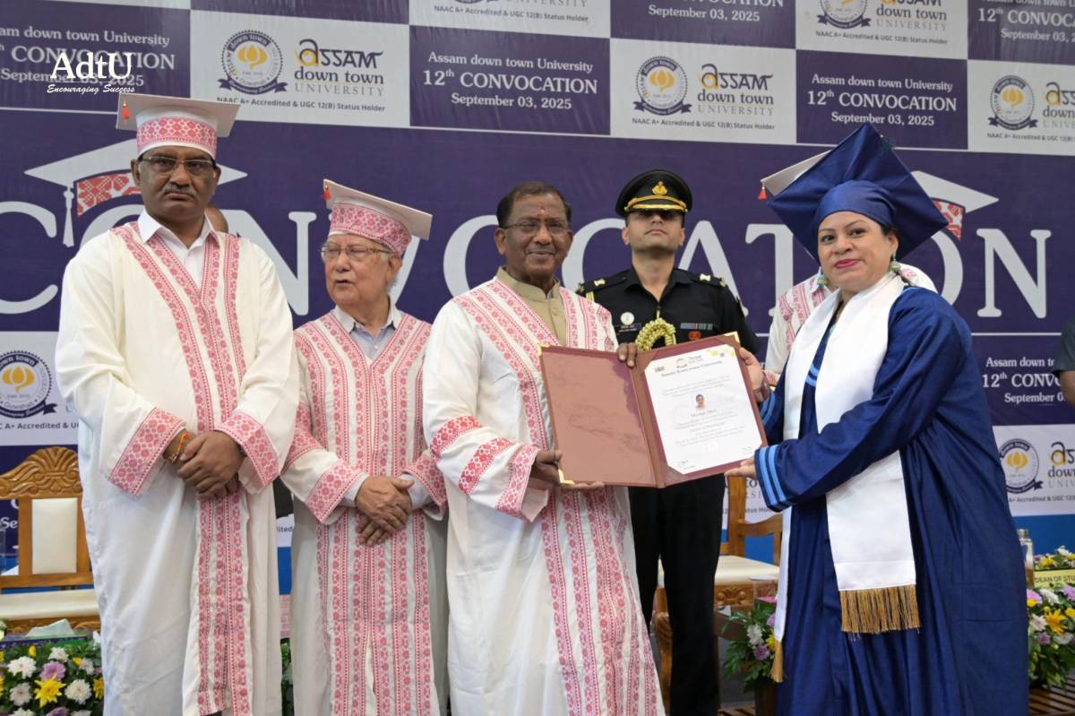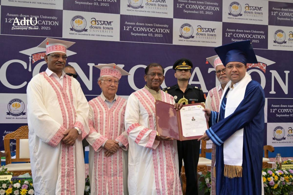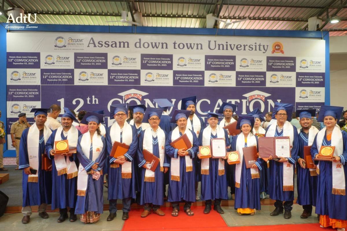Assam down town University proudly hosted its 12th Convocation Ceremony, where 22 distinguished research scholars were awarded the prestigious Doctor of Philosophy (PhD) degree in recognition of their scholarly contributions, commitment to advanced research, and pursuit of academic excellence.