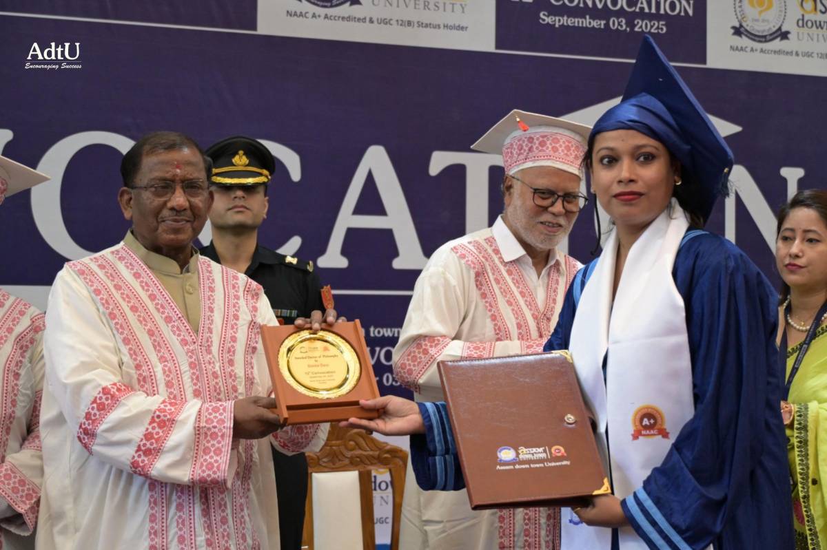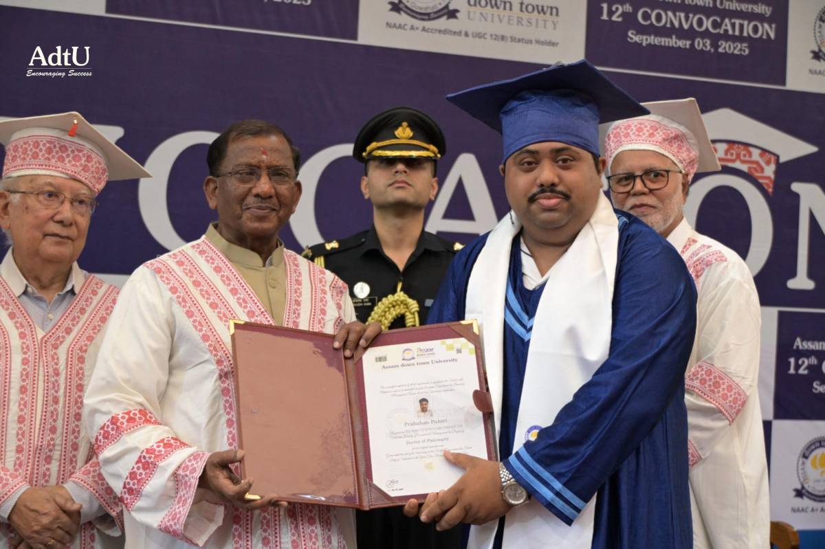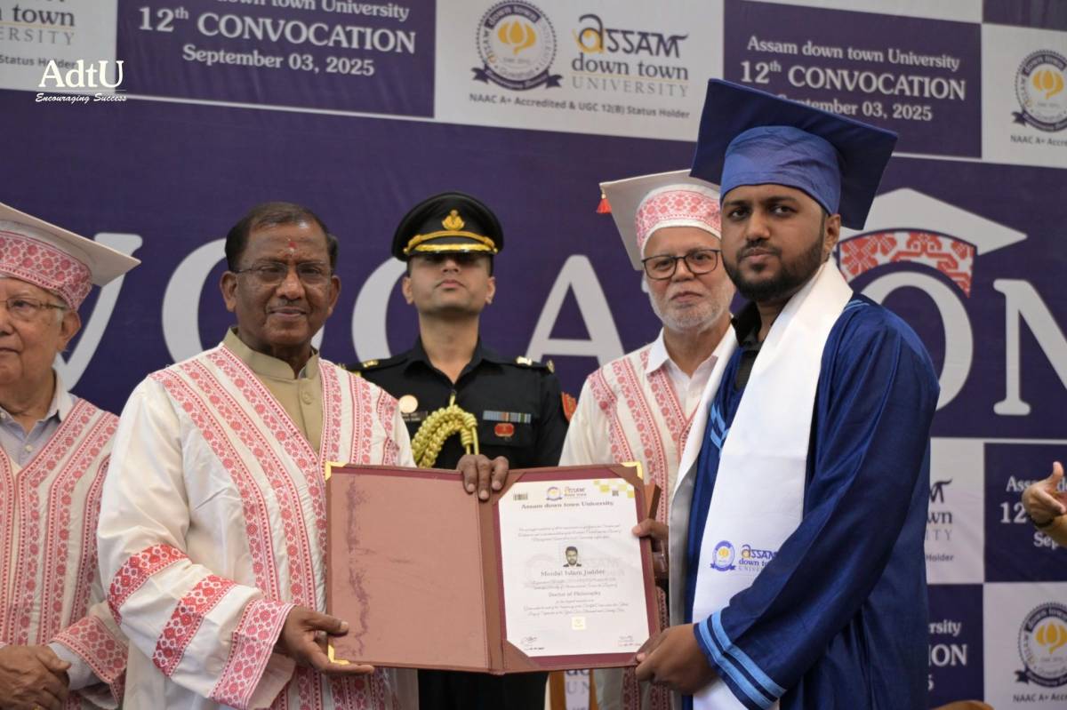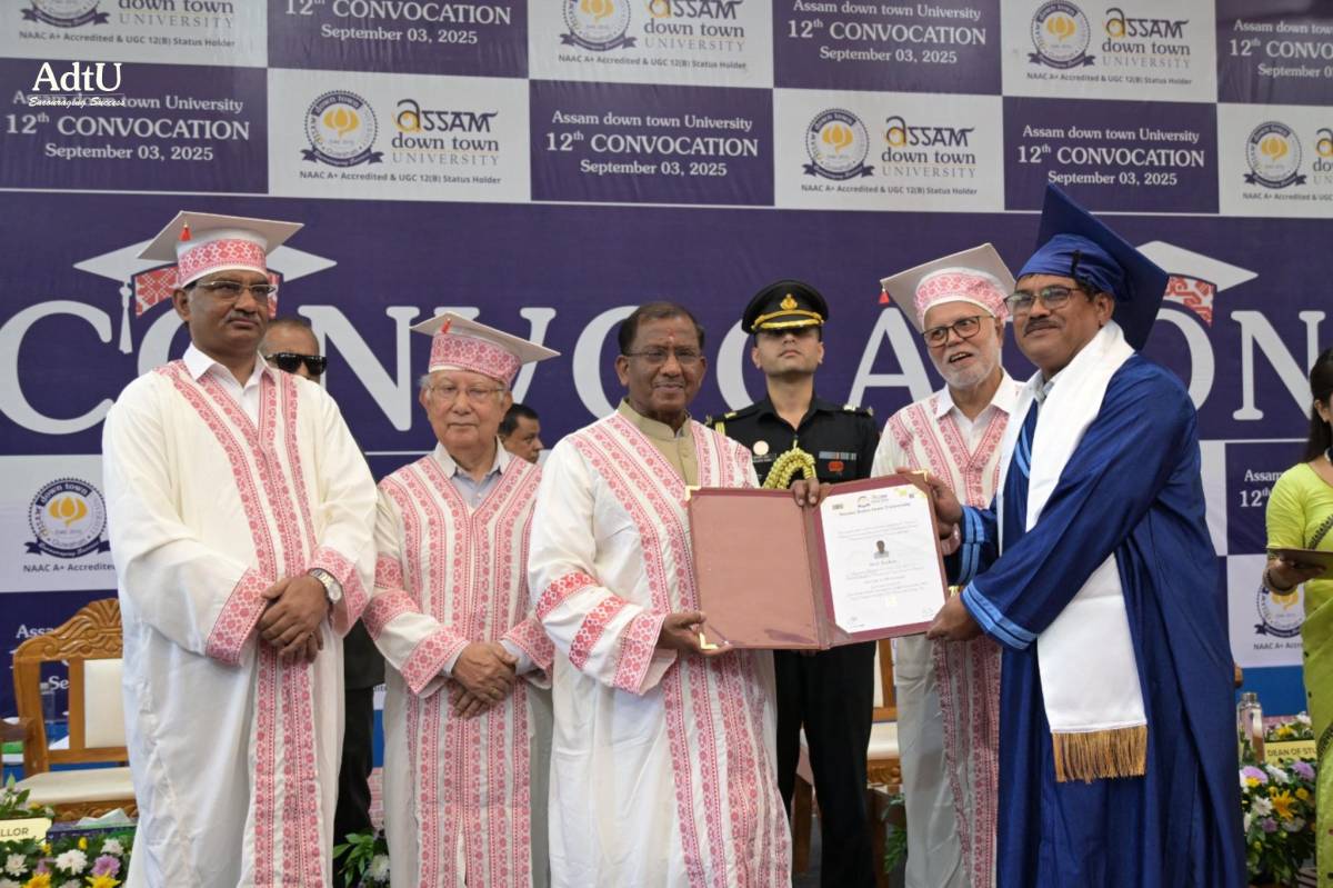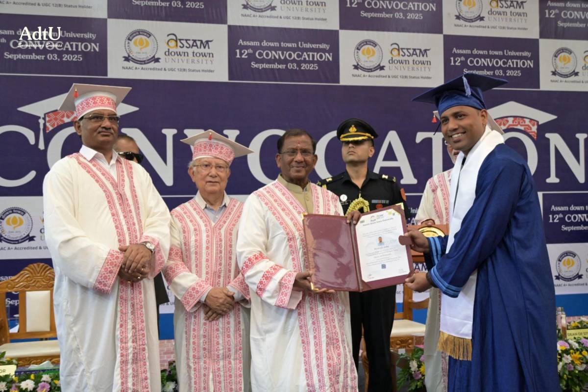 Assam down town University proudly hosted its 12th Convocation Ceremony, where 22 distinguished research scholars were awarded the prestigious Doctor of Philosophy (PhD) degree in recognition of their scholarly contributions, commitment to advanced research, and pursuit of academic excellence.
