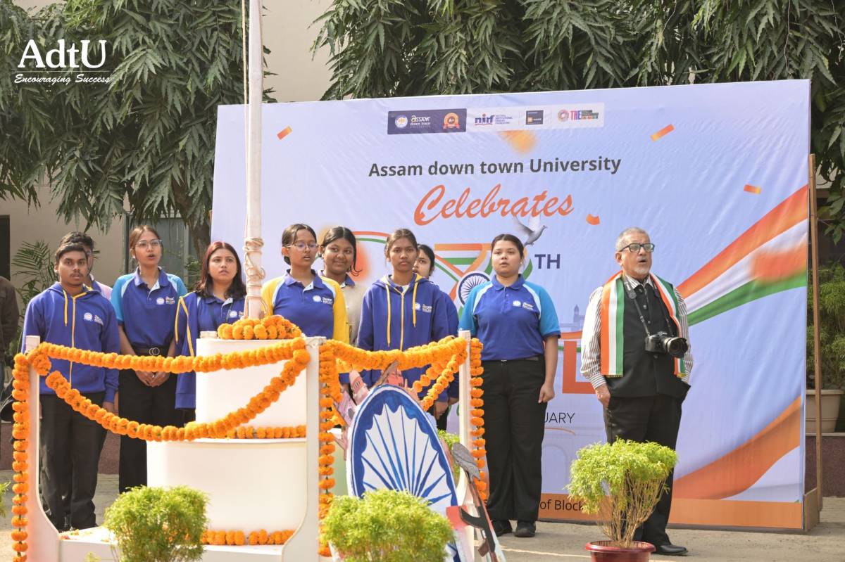 Assam down town University marked the 77th Republic Day with great pride and patriotic fervour through a well-structured ceremony, under the able organization of the Faculty of Physiotherapy and Rehabilitation.