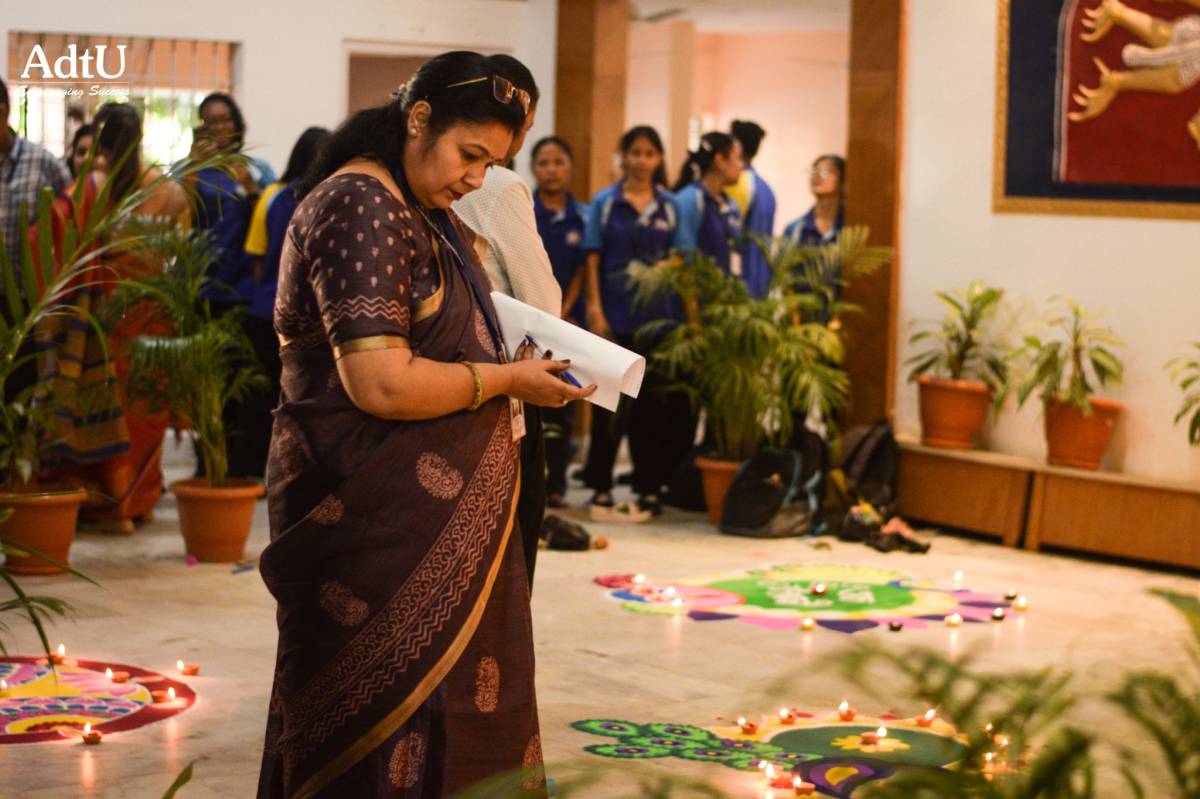 Assam down town University sparkled with festive joy during its Pre-Diwali Celebration, turning the campus into a vibrant hub of colours, lights, and community spirit. The celebration featured the much-loved Campus Bazaar Stalls, where students showcased their creativity and entrepreneurial flair with handmade crafts, festive décor, and traditional treats. Adding to the charm, melas from the University’s adopted villages brought a touch of Assam’s rural artistry and culture to the heart of the campus. The festive mood reached its artistic peak with a Rangoli Competition, where students adorned the floor with intricate designs and bright hues, spreading messages of unity, celebration, and light.