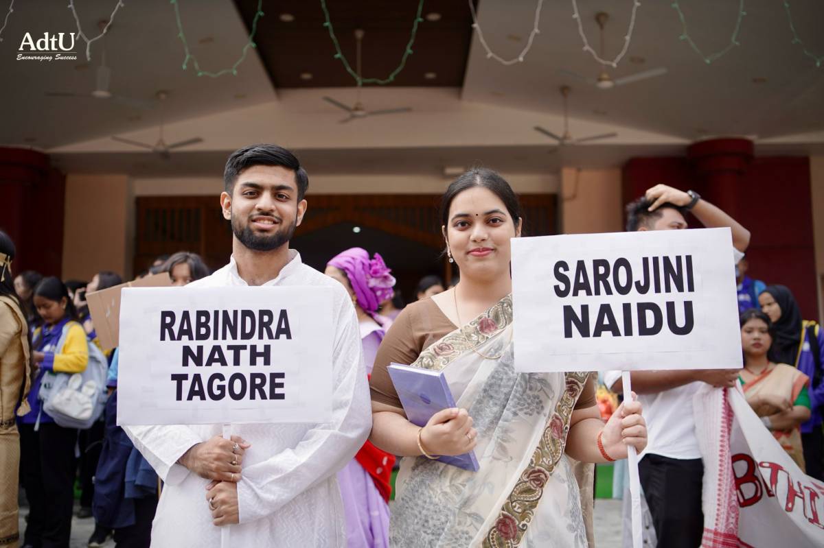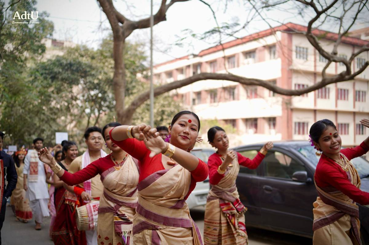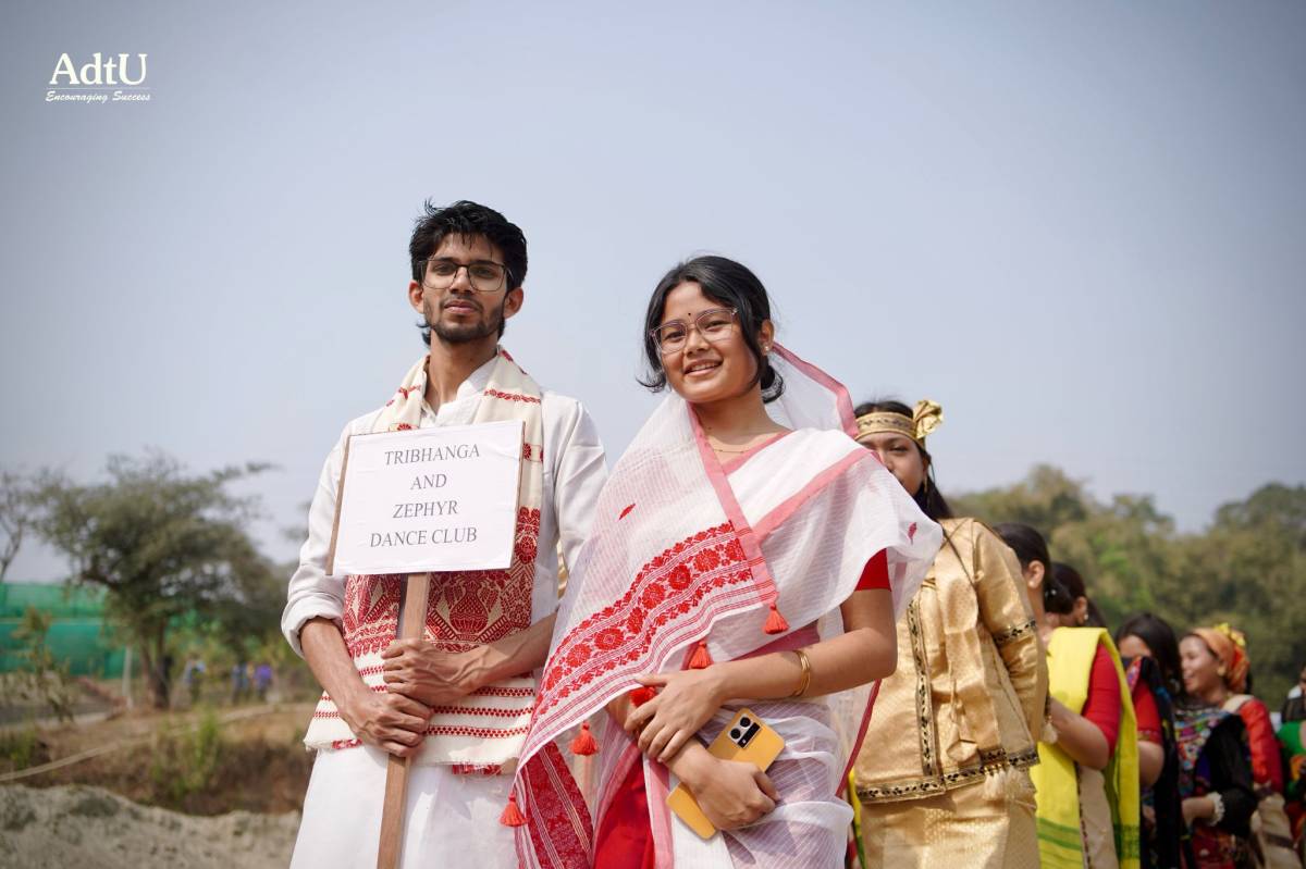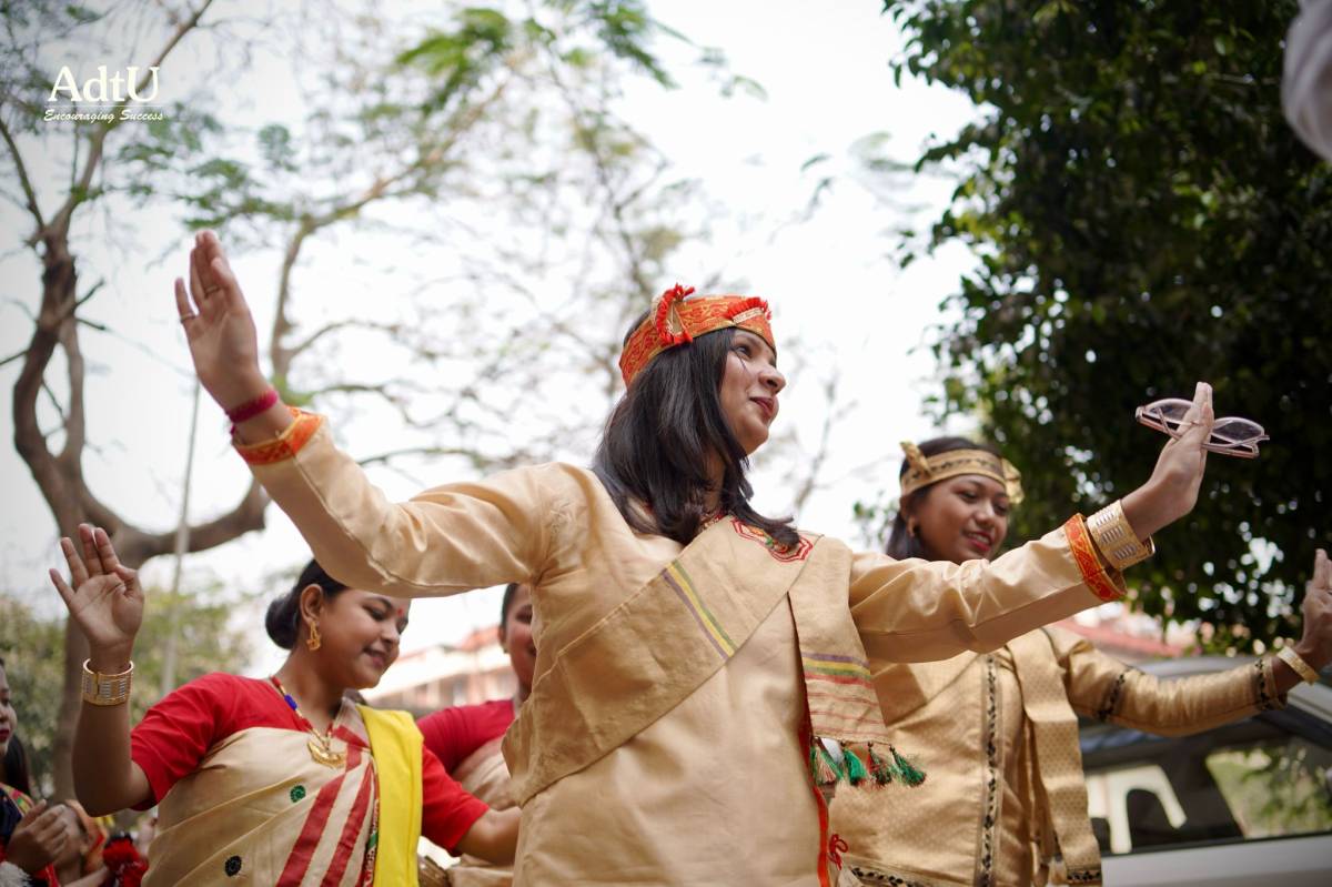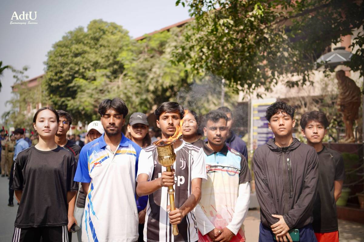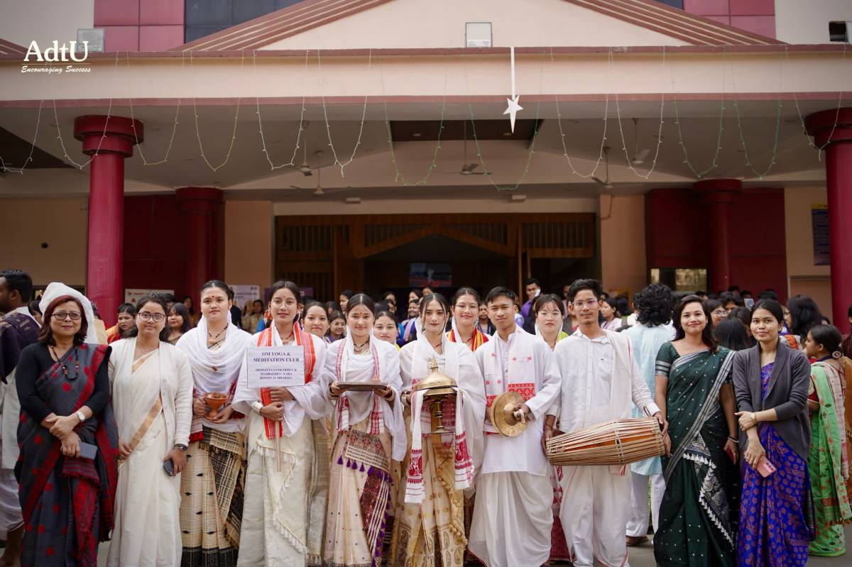 The first day of Varsity Week at Assam down town University commenced with grandeur and spirit as the ceremonial mashal lighting ignited not just the flame, but the collective enthusiasm of the campus. Marking the official opening, a vibrant procession followed, beautifully depicting the rich diversity of cultures, traditions, and identities that make AdtU a true confluence of unity in diversity. Showcasing their rich traditions, students added warmth and vibrancy to the celebrations, setting the spirit for the days ahead.