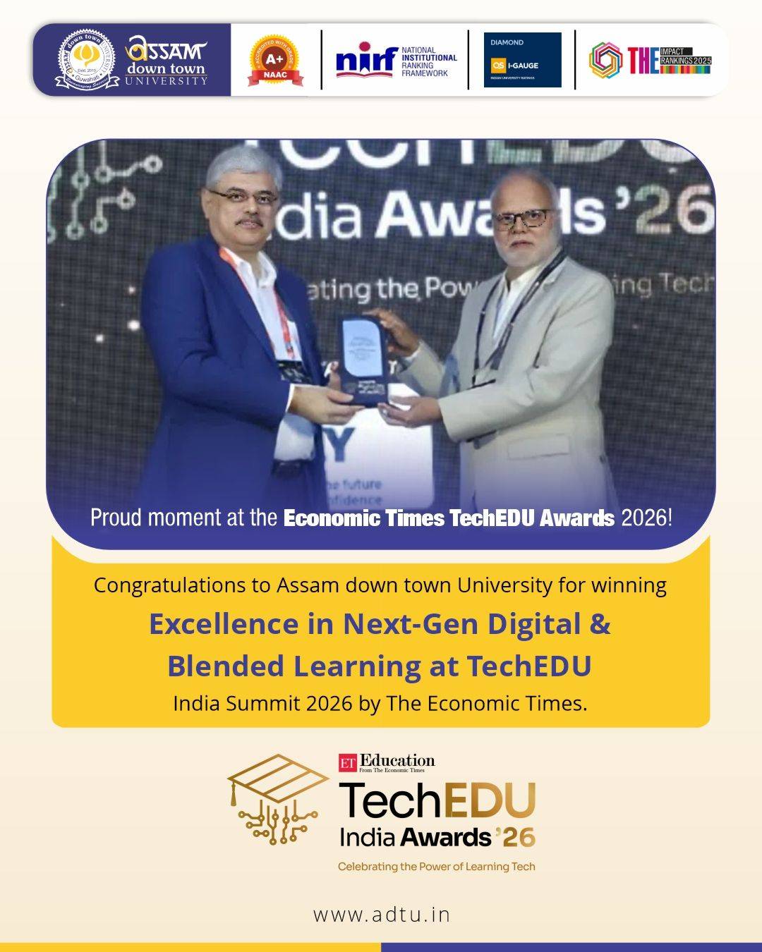 Hearty Congratulations to Assam down town University on being honoured at the ET TechEDU Awards 2026, presented by The Economic Times!