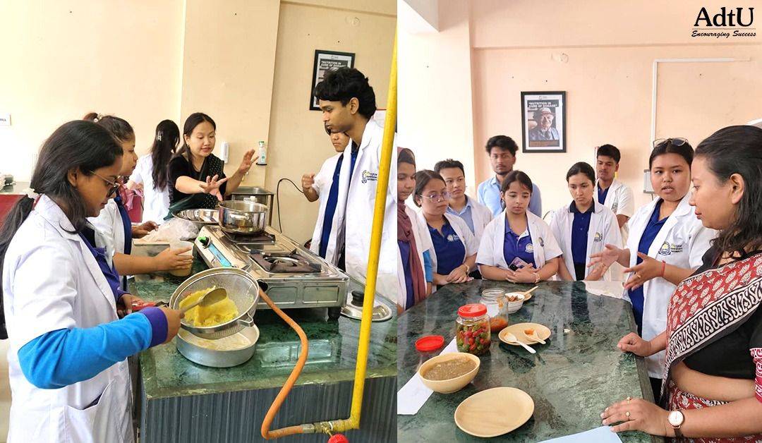 Faculty of Agricultural Sciences and Technology at Assam down town University conducted a hands-on practical session on Food Preservation and Value Addition. Held in the Food Nutrition & Dietetics (FND) laboratory, the event served as a dynamic platform for interdisciplinary learning among agriculture students.