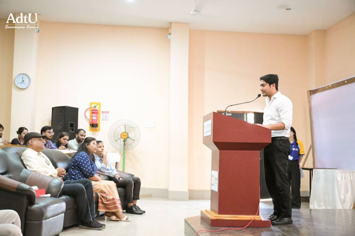 In his session, Mr. Das shared his inspiring journey, recalling the motivations and experiences that led him to choose Assam down town University for his higher education. He mentioned that the university’s advanced technology, modern infrastructure, and practical learning environment played a crucial role in shaping his decision. Reflecting on his student life, he spoke fondly about how those formative years helped build his confidence, enhance his personality, and strengthen his academic and professional foundation.