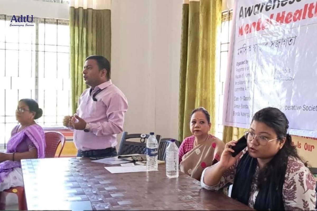 Assam down town University organized an Awareness Programme on Mental Health at Barebarania CLF Primary Co-operative Society, Bonda, with the objective of promoting mental health awareness among women and the community.