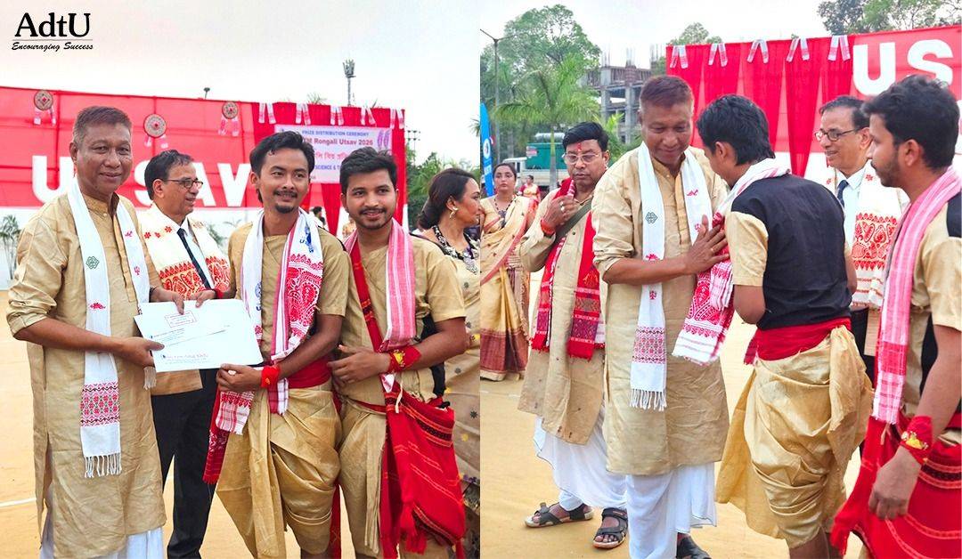 Assam down town University’s Bihu Dol achieved a commendable 4th position in the Senai category at the Mukoli Bihu competition held during Rongali Utsav 2026, hosted by University of Science and Technology Meghalaya (USTM). The team was also awarded a cash prize of Rs.10,000 in recognition of their performance.