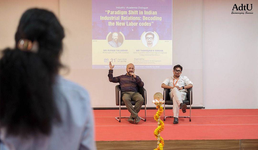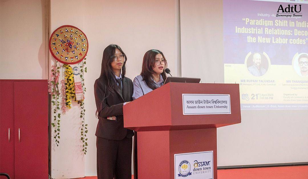 Assam down town University hosted an event titled “Paradigm Shift in Indian Industrial Relations: Decoding the New Labor Codes”, conducted by the Faculty of Commerce & Management with the objective of providing students with deeper insights into the evolving landscape of labour laws in India.