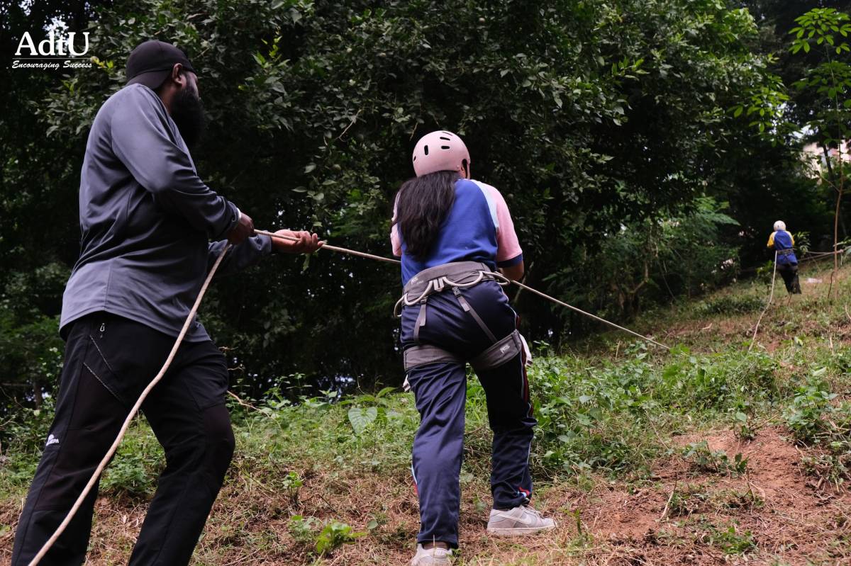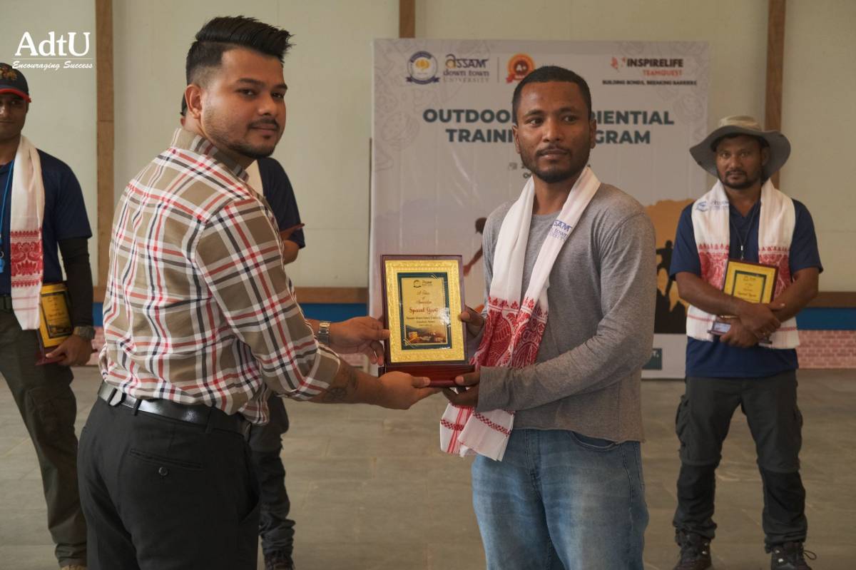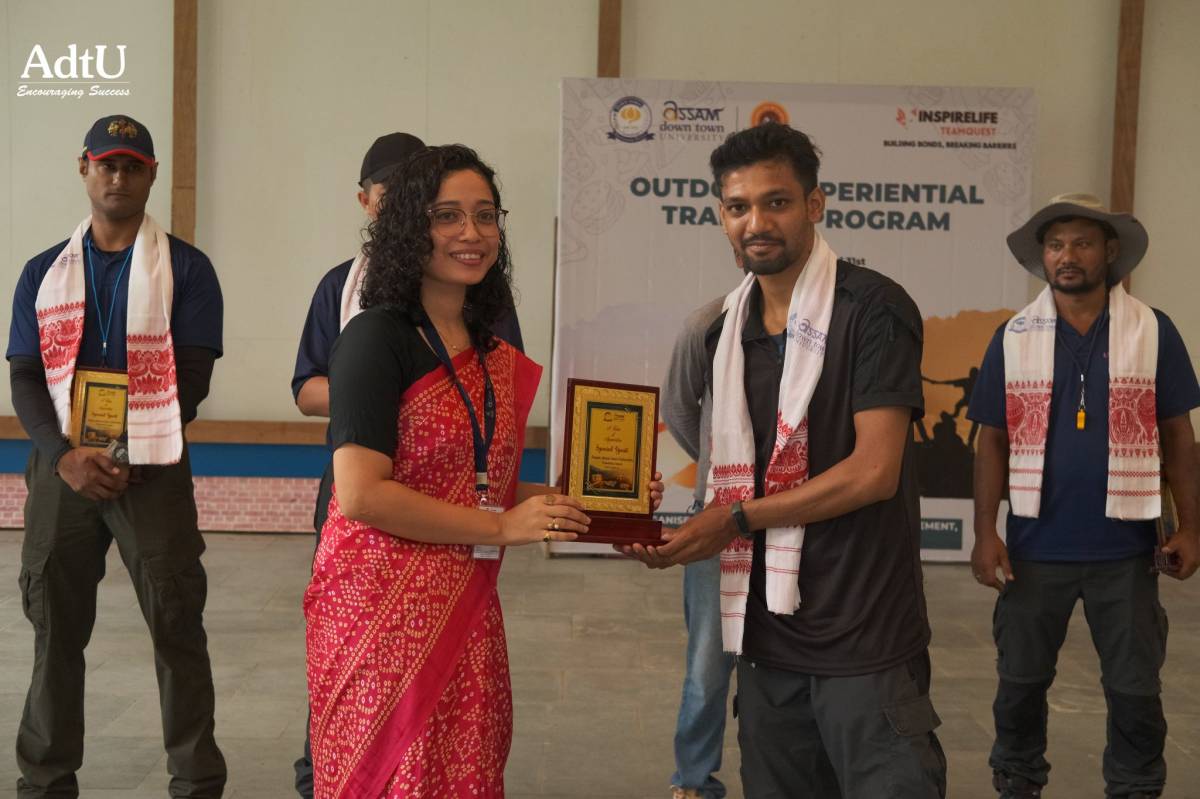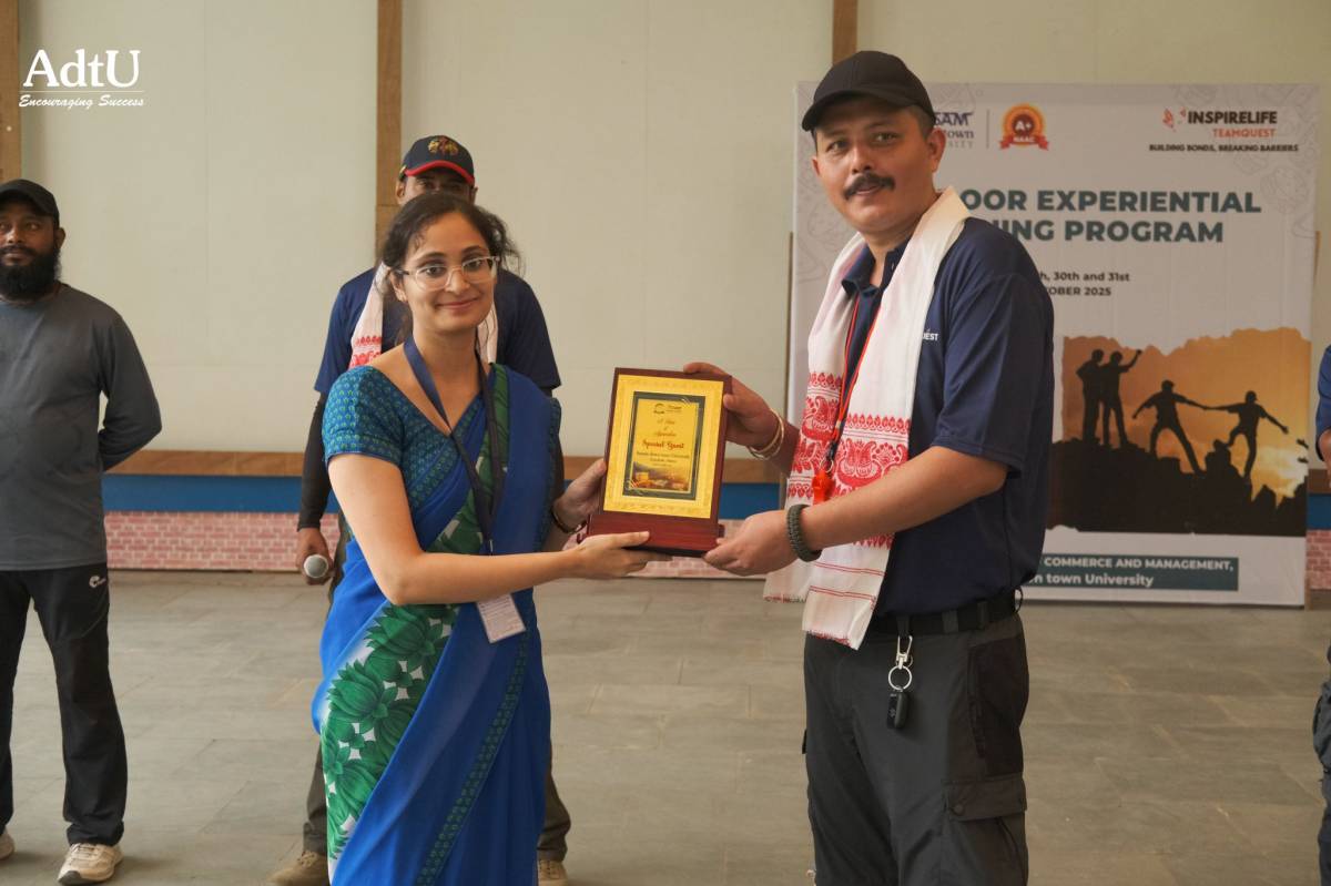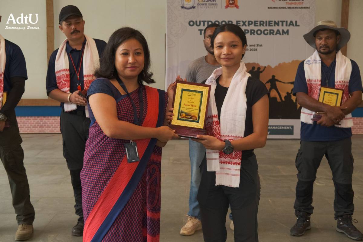 Assam down town University, through the Faculty of Commerce and Management, organized the Outdoor Experimental Training Program in association with TeamQuest Retreat, which commenced at the Amphitheatre with an introduction and felicitation of the esteemed TeamQuest members: Major Bhaskar Sharma (Co-founder), Anjan Gogoi (Co-founder; Police and Military Combat Trainer), Purna Deka (Co-founder; High Altitude Rescue Specialist), Tanushree Deka (Certified Mountaineering Instructor), Debakor Das (Chief Mountaineering Technical Instructor), Horesh Mahanta (Technical Instructor and Equipment Specialist), and Mukut Deka (Unarmed Combat Instructor).
