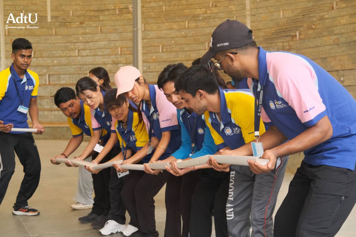 Following the formal proceedings, an engaging ice-breaking session was conducted to familiarize participants with the team and the day’s activities. A total of 60 students from MBA, MHM, and MTTM programs actively participated on Day 1. The participants were then divided into groups and assigned to two activity zones: Location 1 — Block B, Dream Café, B3, hosting the Group Obstacle Race and Confidence-Building Task, and Location 2 — Football Field, featuring a Progressive Group Task and Group Planning Exercise. The training emphasized teamwork, leadership, and physical and mental resilience, providing students with a valuable experiential learning opportunity beyond classroom boundaries.