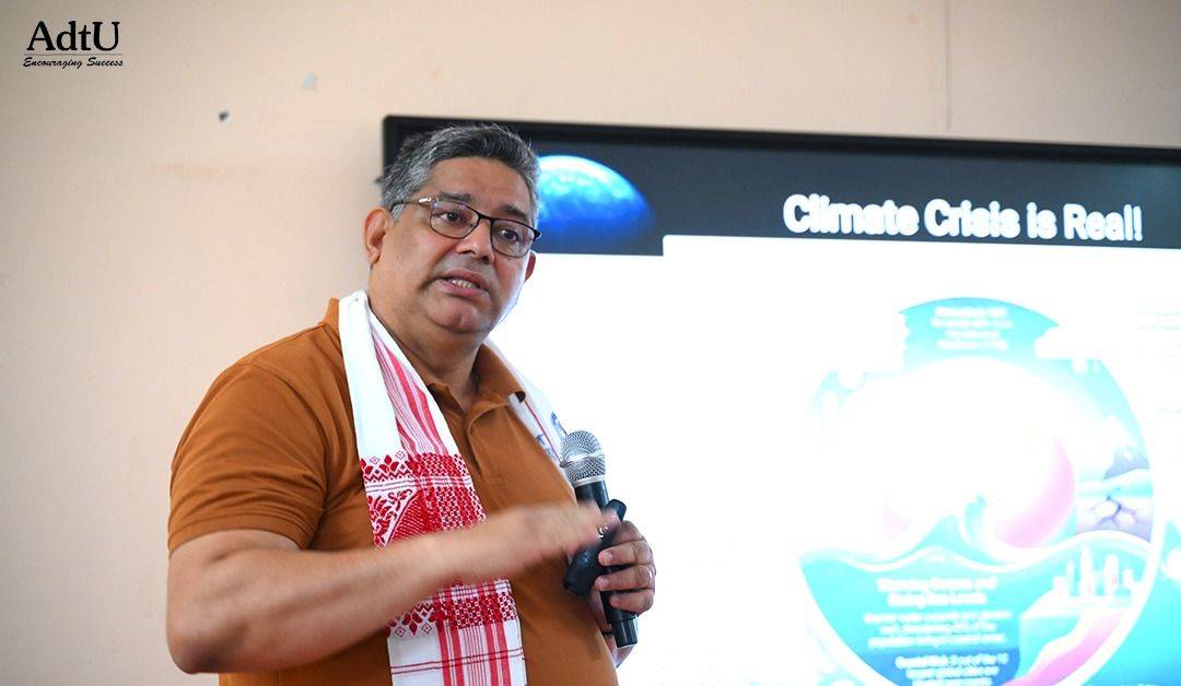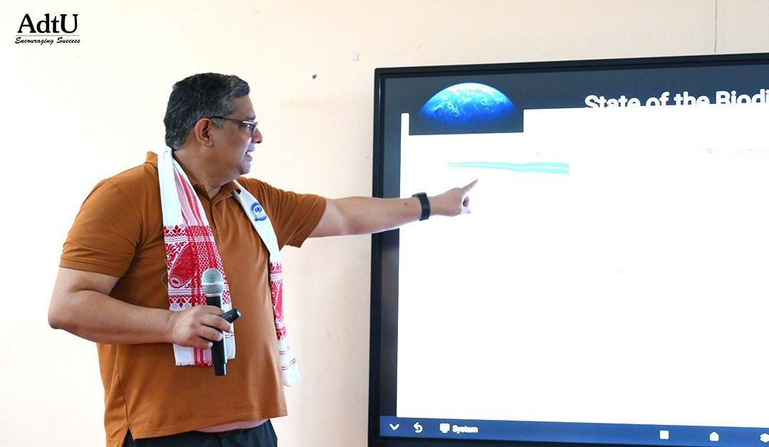 The program featured an insightful expert talk by Dr. Narayan Sharma, Assistant Professor, Cotton University, on the theme “Reconnecting with Nature in the Age of the Triple Planetary Crisis.” The session highlighted important environmental challenges such as climate change, pollution, and biodiversity loss, and encouraged students to adopt sustainable lifestyles.