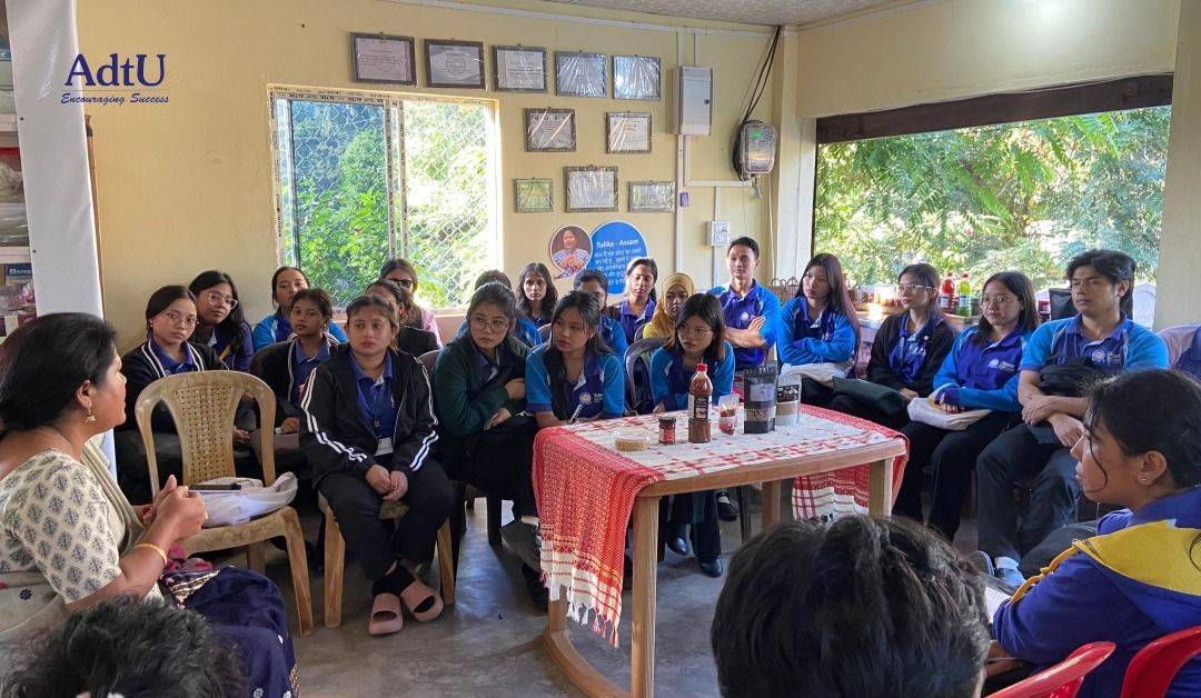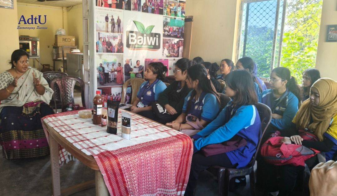 Assam down town University organized an academic industrial visit for the students of the Food, Nutrition and Dietetics (FND) programme to Bajwi Food Products, offering them valuable exposure to food processing and entrepreneurship. During the visit, students explored the production processes of mushroom-based products and traditional pickles, gaining hands-on insights into raw material handling, hygienic practices, quality control, and small-scale food manufacturing techniques.