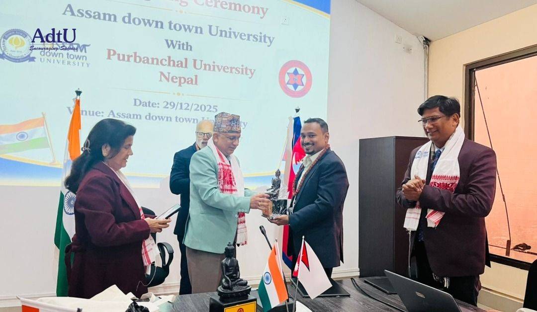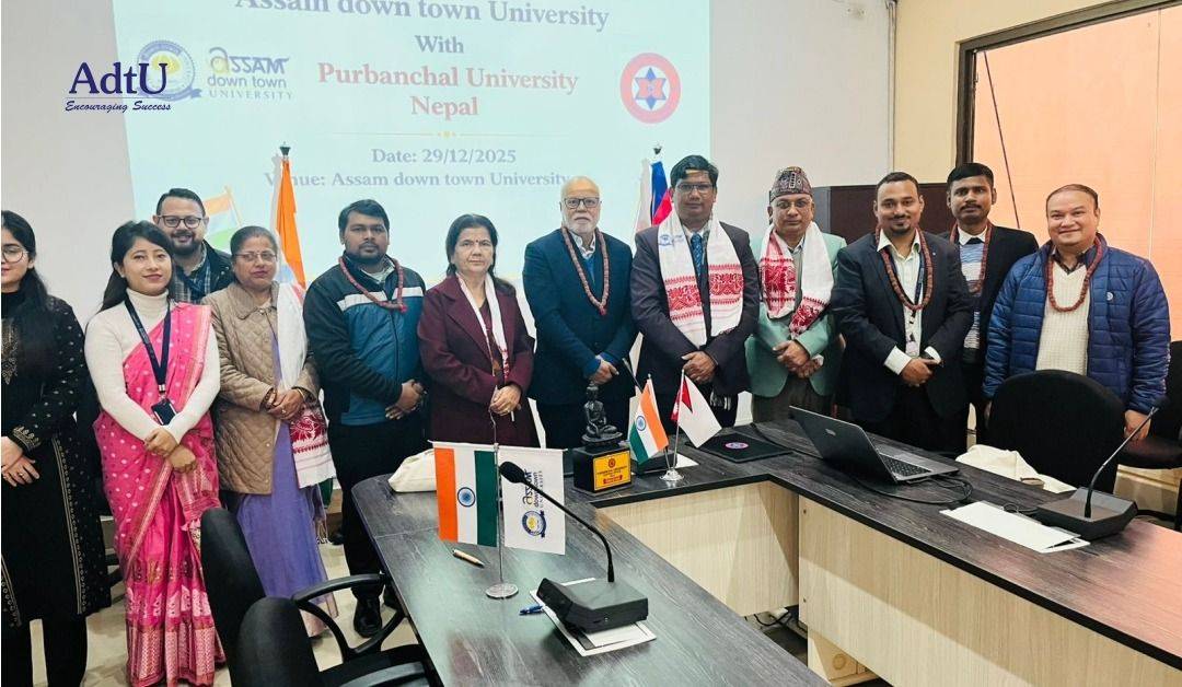 Assam down town University enters a promising new chapter of global academic collaboration with the signing of a Memorandum of Understanding (MoU) with Purbanchal University, Nepal, marking a meaningful step toward strengthening Himalayan ties in higher education.
