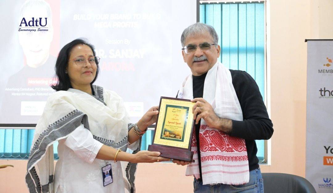 Assam down town University, in association with Young Indians (Yi), Confederation of Indian Industry, and ONE Bharat | Spirit, was honoured to host Dr. Sanjay Arora PhD, Founder & CEO, Shells Advertising Inc., for an enriching session titled “Build Your Brand to Build Mega Profits.”