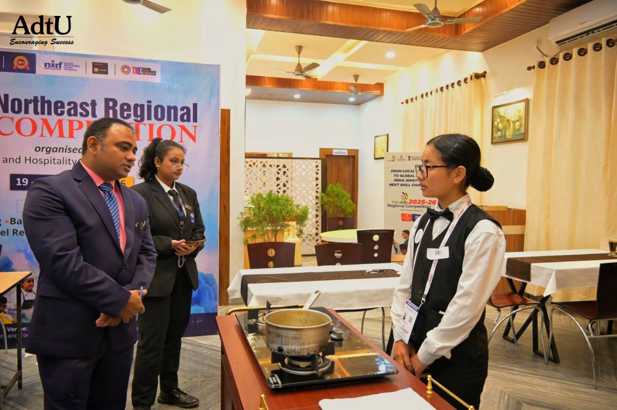 Assam down town University hosted the Northeast Regional IndiaSkills Competition 2026, organised by the Tourism & Hospitality Skill Council Council (THSC), marking a significant milestone in hospitality skill development and youth empowerment in the region. Held from 19th to 21st January 2026, the competition brought together talented students and young professionals from across the Northeast to showcase excellence in key hospitality trades including cooking, bakery, patisserie & confectionery, hotel reception, and restaurant service. With industry-aligned practical challenges such as wine tasting, pastry and bread making, three-course continental menu preparation, guest situation handling, and front office checkout procedures, the event offered a real-world platform to assess technical expertise, professionalism, and service standards. Hosted at the state-of-the-art Hospitality Lab of the Discipline of Hospitality and Tourism Management, AdtU, the event reinforced the university’s commitment to nurturing industry-ready professionals and strengthening the hospitality ecosystem of the Northeast.