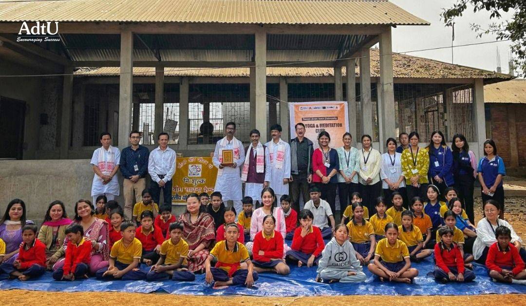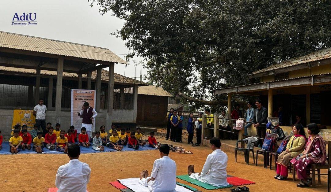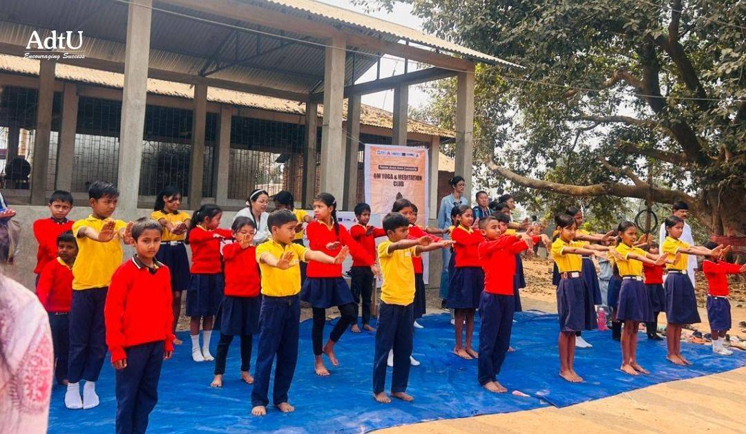 The Om Yoga and Meditation Club of Assam down town University, in collaboration with Bharatiya Yoga Sansthan, successfully conducted a Yoga and Meditation Session at Tintukura L P School, Tintukura village. The initiative aimed to encourage hashtag#physicalfitness, hashtag#mentalwell-being, and awareness about the importance of yoga among young students.