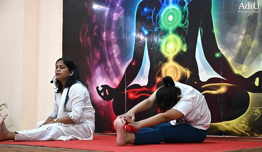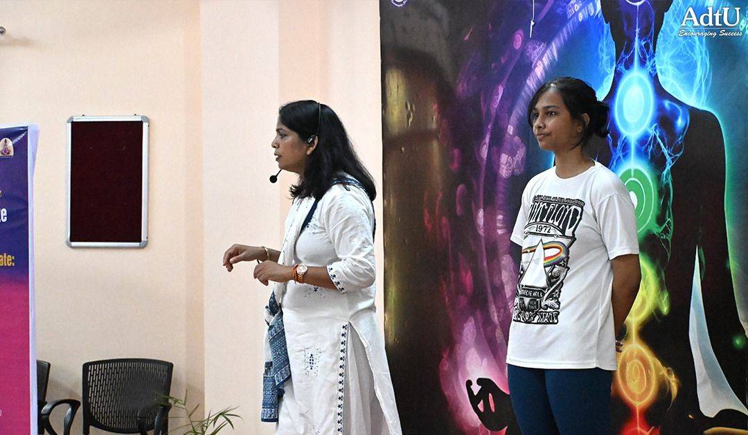 Another session was conducted by Ms. Lakhimi Gogoi, Chairperson of the Om Yoga & Meditation Club, who spoke about the various activities and services offered by the club at AdtU and how they support students in achieving their goals with a sense of calmness and well-being. The workshop saw active participation from all club members and concluded successfully with students gaining valuable insights into incorporating yoga and mindfulness into their daily routines.