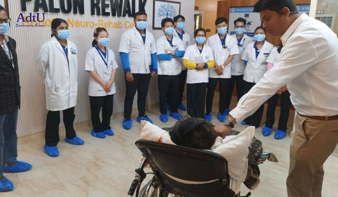 The Physiotherapy students of Assam down town University recently visited Palon ReWalk, a leading residential neuro-rehabilitation centre and a pioneer in North East India. The visit offered valuable exposure to cutting-edge AI-driven neuro-rehabilitation technologies, including robotic exoskeleton therapy and EEG-based Brain-Computer Interface (BCI) systems.