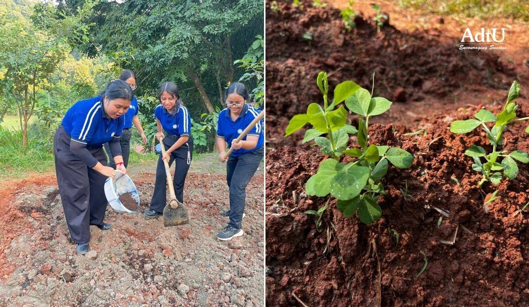 During the field visit, students observed crop growth patterns, soil conditions, and farm management techniques, gaining firsthand insight into the realities of food production. They actively participated in sowing and nurturing crops such as field pea, rajma, and green gram, allowing them to understand each stage of crop development through direct involvement.