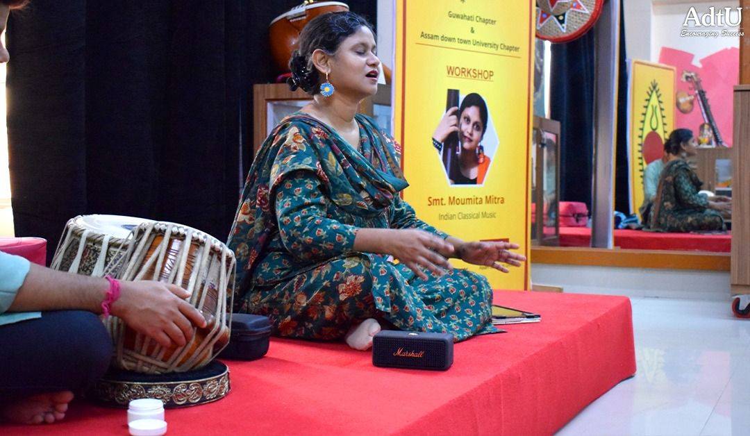 Assam down town University had the privilege of hosting an enriching Indian Classical Music workshop as part of Virasat Anubhav 2026, organized by the SPIC MACAY AdtU Chapter. The session was conducted by renowned classical vocalist Smt. Moumita Mitra, who guided students through the essence and discipline of Indian classical music. Through interactive demonstrations, she introduced participants to the nuances of ragas, voice modulation, and the philosophy behind this timeless art form. The workshop offered students a rare opportunity to closely engage with a master artist, deepening their appreciation for the rich heritage of Indian classical music and inspiring many to explore the art further.