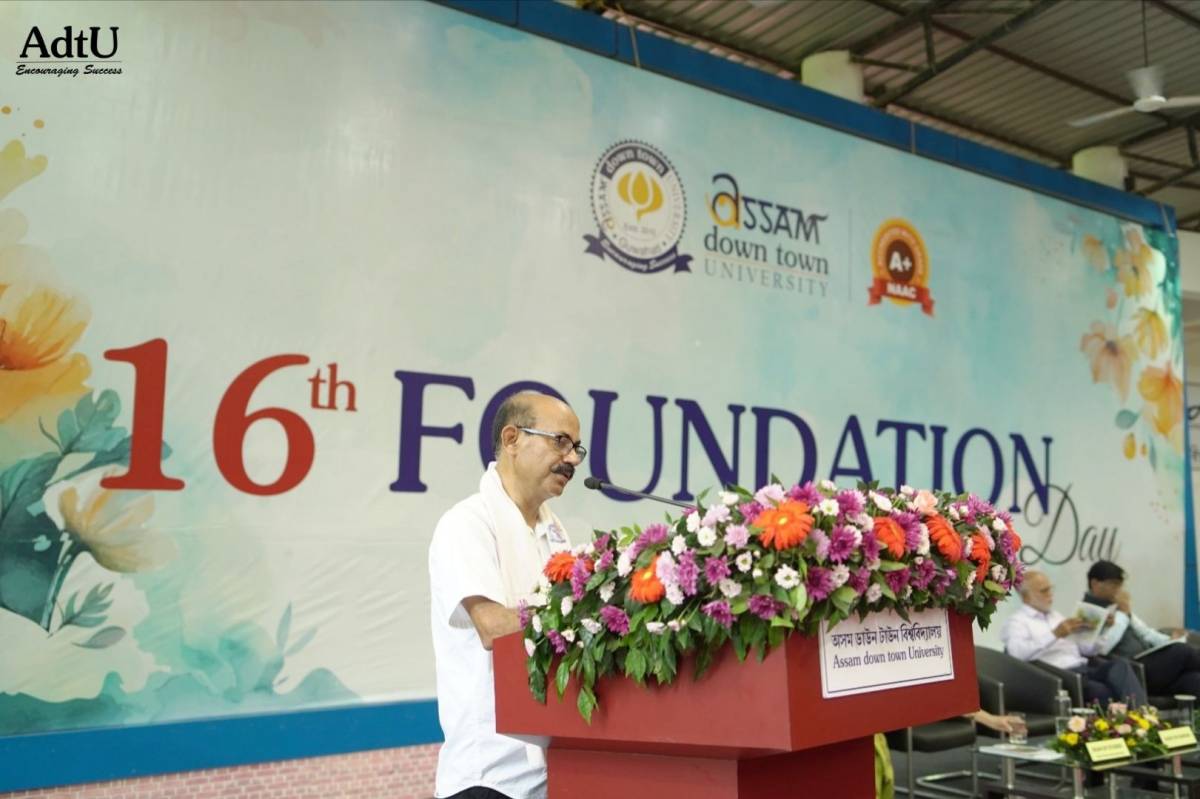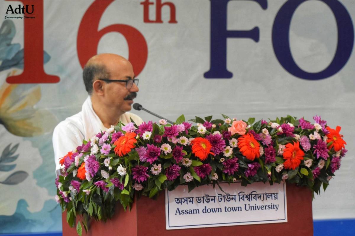 Assam down town University was honoured to have Sri Naresh Kalita, Editor of Niyamiya Barta, as the Guest of Honour during the 16th Foundation Day celebrations. He graced the occasion with the release of the AdtU magazine, an emblem of the university’s academic and cultural achievements. In his inspiring address, Sri Kalita encouraged the community to uphold the values of education, innovation, and social responsibility, making the celebration all the more memorable.