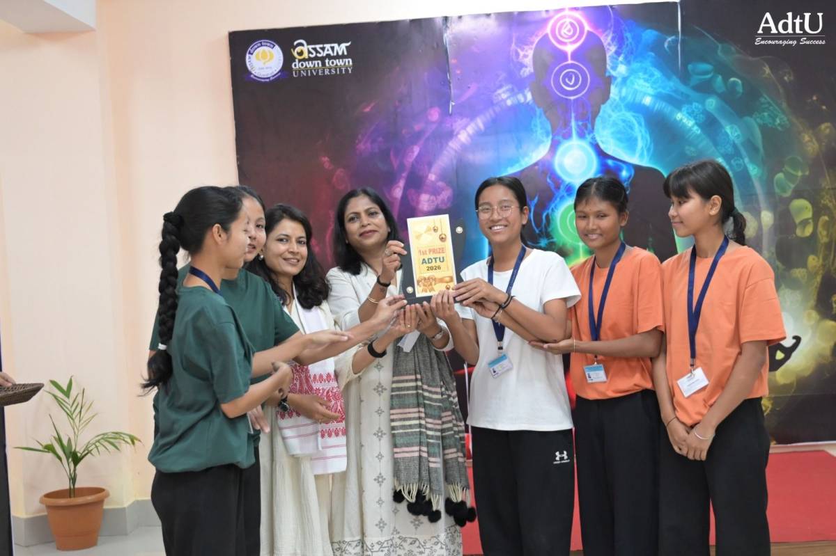 Assam down town University, as a part of Varsity Week, Attitude 2026, successfully organized a one-day yoga competition under the OM Yoga & Meditation Club themed “AdtU Campus,” aiming to promote physical well-being, mental calmness, and the harmonious integration of yoga and artistic expression among students.