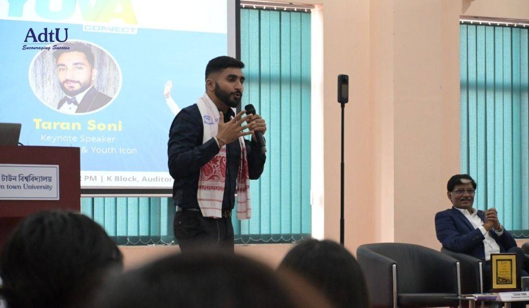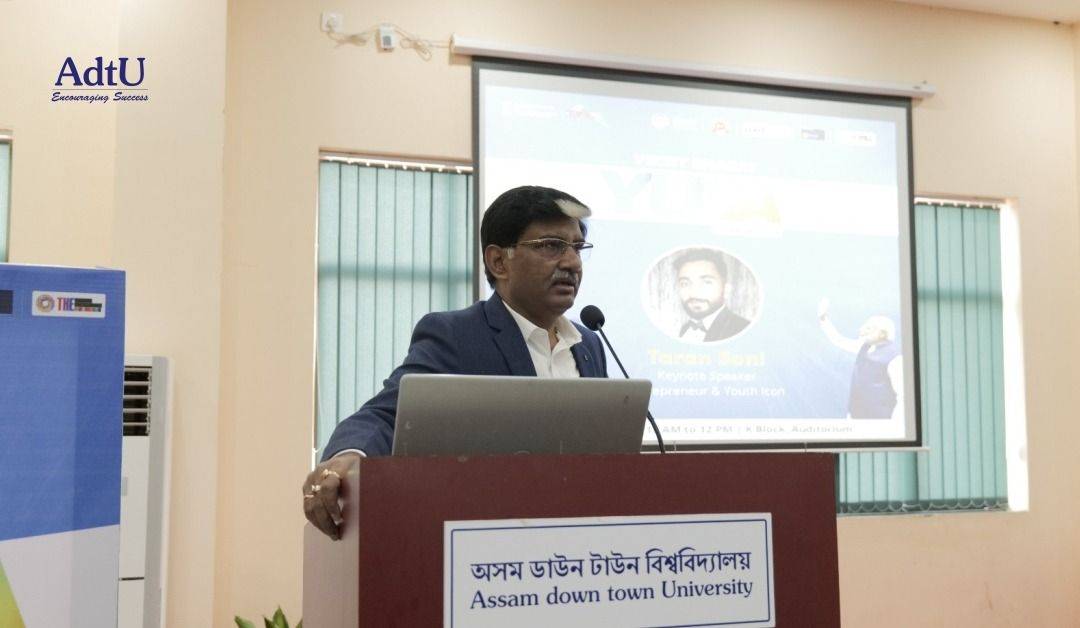 A thought-provoking session under the Viksit Bharat Yuva Connect (Ambassador–Yuva Connect) initiative was held at Assam down town University. The program began with an inaugural address by the Pro Vice Chancellor, highlighting the vision, relevance, and opportunities of Viksit Bharat 2047 for university students, followed by the introduction of the speaker, Mr. Taran Soni.