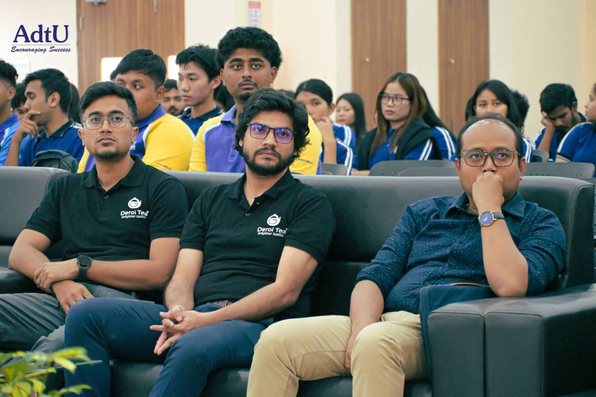 The sessions featured Mr. Surjya Prakash Borthakur and Mr. Sudarshan Deka, Directors of Deroi Tea, who shared their journey of identifying the untapped potential of Assam tea, focusing on product innovation, branding, quality assurance, digital marketing, and expanding into wider markets. Mr. Trailukya Dutta, Founder & CEO of Tholua Pratisthan Pvt. Ltd., spoke about innovation-driven rural entrepreneurship and the production of black garlic, encouraging students to transform local challenges into business opportunities.