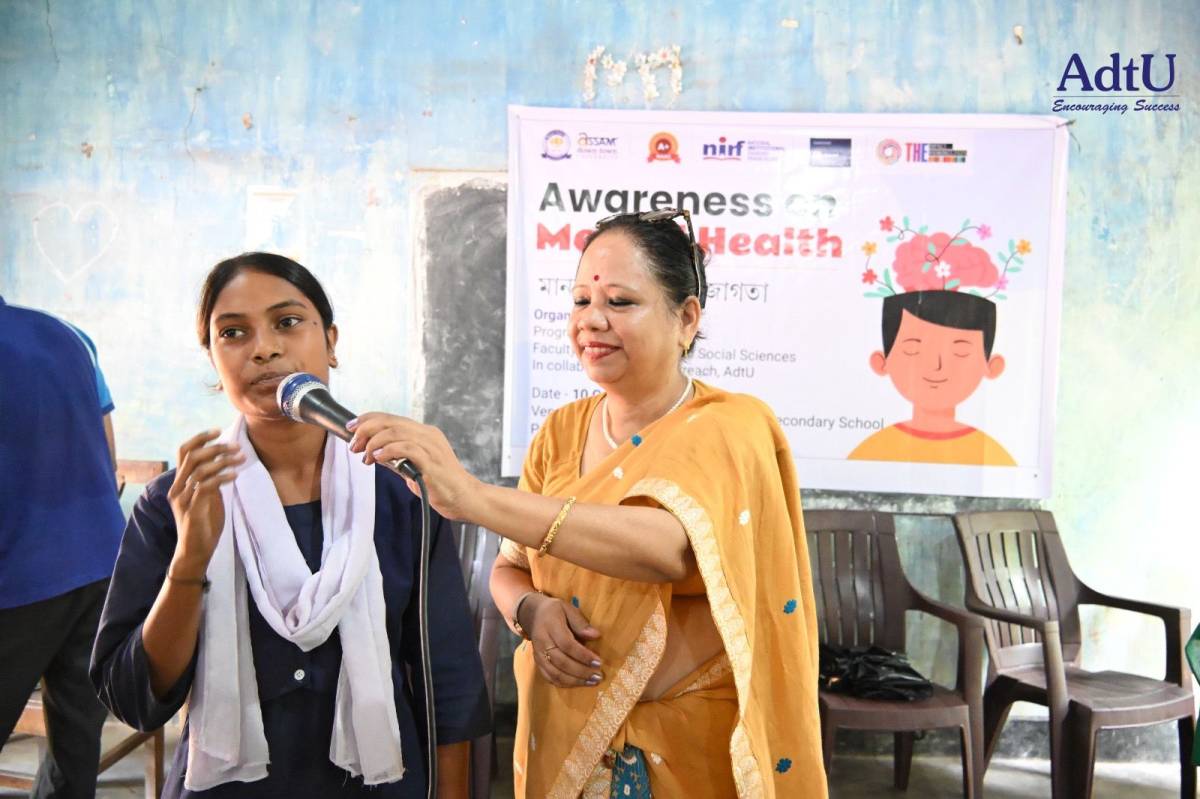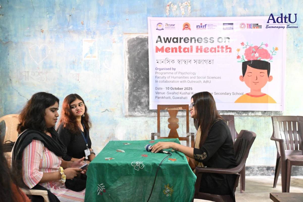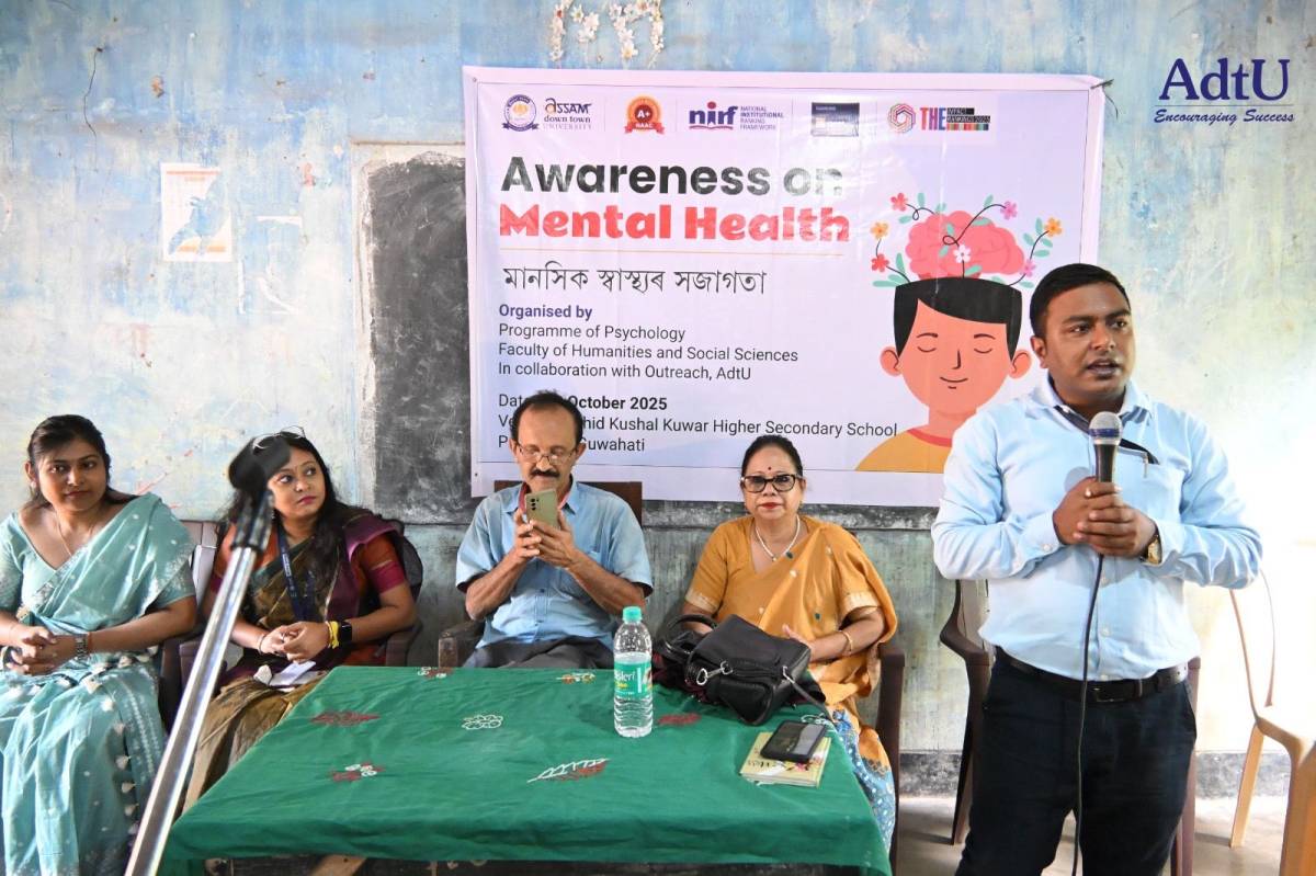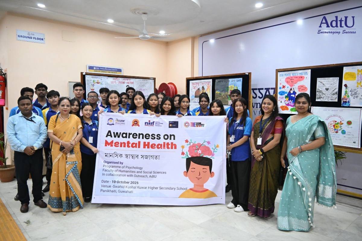 Assam down town University observed World Mental Health Day 2025 through an impactful outreach program organized by the Programme of Psychology, Faculty of Humanities and Social Sciences, in collaboration with the Outreach Extension Committee.